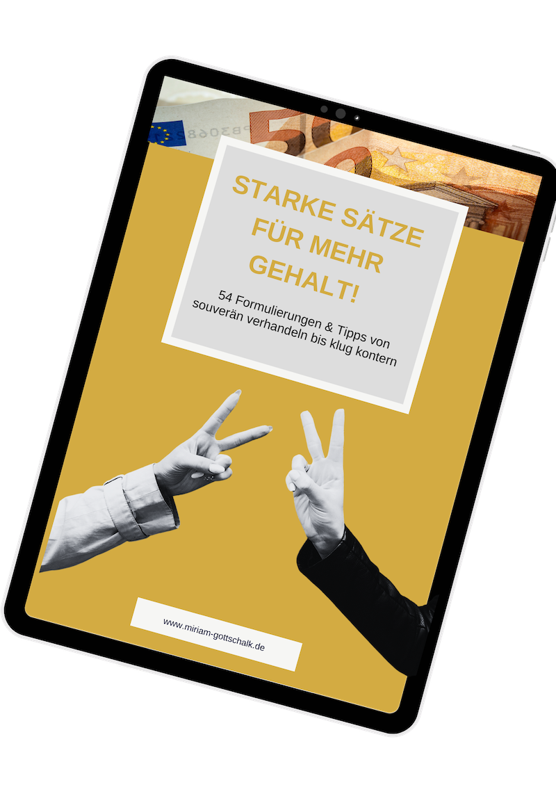 In dem Formulierungs-Guide „Starke Sätze“ gebe ich dir 54 Formulierungshilfen und Tipps, die für dich rund um das Thema Gehaltsgespräch infrage kommen könnten. Du kannst sie entweder 1:1 nutzen oder sie als Grundlage für deine individuelle Anpassung verwenden.